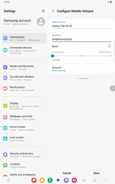 Press WPA3-Personal to password protect your Wi-Fi hotspot.