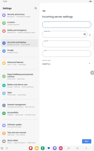 If this screen is displayed, you email account has been recognised and set up automatically. Follow the instructions on the screen to key in more information and finish setting up your tablet.