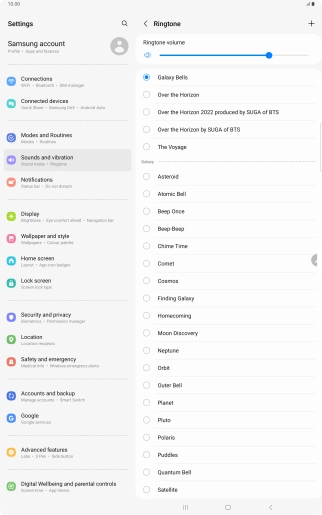 To use a different ring tone than the default ones, press the add ring tone icon and follow the instructions on the screen to select the required ring tone.