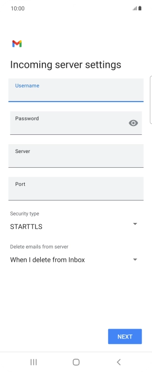 Press the field below "Server" and key in the name of your email provider's incoming server.