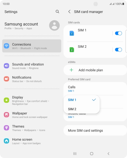 When you insert two SIMs into your phone, you can make calls and send and receive messages from both SIMs. You can also select a default SIM for mobile data usage.