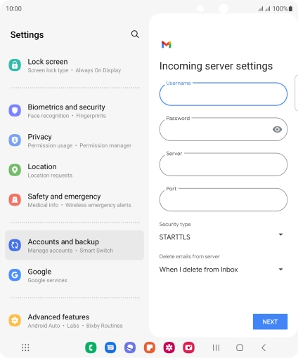 Press the field below "Server" and key in the name of your email provider's incoming server.