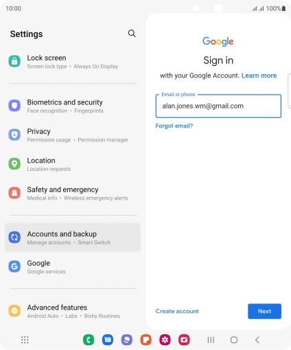 If you don't have a Google account, press Create account and follow the instructions on the screen to create an account.