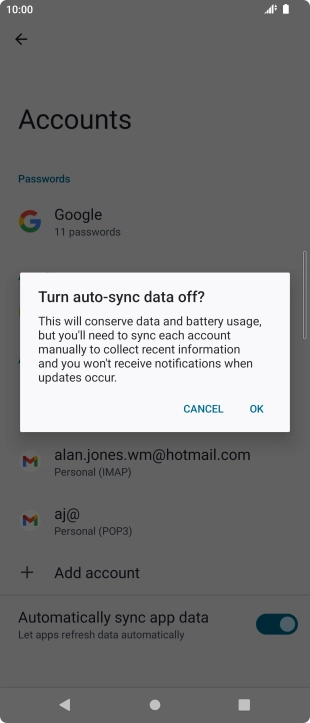 Press the indicator next to "Automatically sync app data" to turn the function on or off.