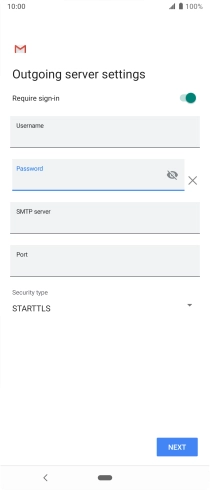 Press the field below "Password" and key in the password of your email provider's outgoing server.