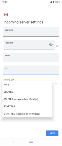 Press the field below "Server" and key in the name of your email provider's incoming server.