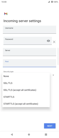 Press the field below "Server" and key in the name of your email provider's incoming server.