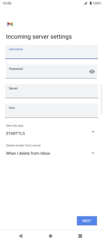 Press the field below "Server" and key in the name of your email provider's incoming server.