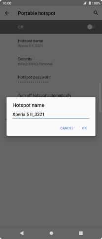 Press Hotspot name and key in the required name for the Wi-Fi hotspot.