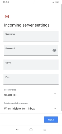 Press the field below "Server" and key in the name of your email provider's incoming server.
