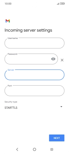 Press the field below "Server" and key in the name of your email provider's incoming server.