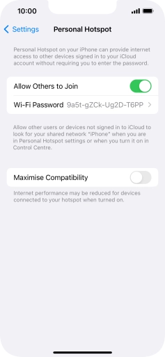 Find the list of available Wi-Fi networks and select the personal hotspot you've just set up.